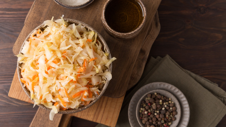 It's easy to add color and texture to a lackluster tuna salad with bright veggies. However, if you're looking to give a unique punch of flavor to your next batch, then sauerkraut is at your service. Tangy, sour, and salty, sauerkraut is a pickled vegetable like no other. Traditionally stuffed into a Rueben sandwich or scattered over a bratwurst, these fermented shreds of piquant cabbage lend dishes a tangy lift and brightness.