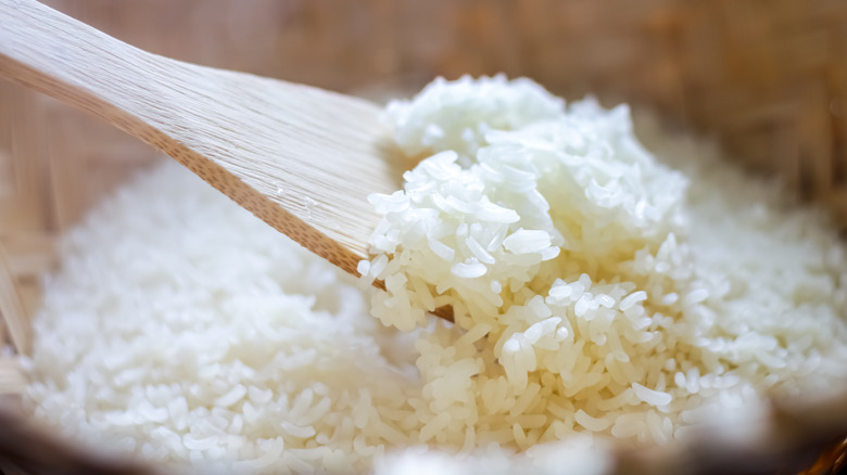 Sticky rice also doesn't absorb sauces and seasonings as well as less starchy varieties, meaning the flavors can end up concentrated in just a few areas of the dish instead of being evenly distributed. The dense, gluey texture of sticky rice simply doesn't allow it to fry up in the light, airy way that's essential for fried rice. While sticky rice is perfect for dishes like mango sticky rice or in steamed dumplings, it's best to leave it out of your fried rice recipes.