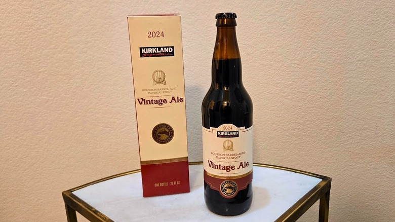 Kirkland Signature's 2024 batch of Vintage Ale was available by mid-September for $9.99 per 22-ounce bottle at my Costco location near Las Vegas. For the size and price, this is a bargain compared to similarly aged American imperial stout beers. Each bottle comes packaged inside an attractive cardboard box, making it feel like you are opening a gift instead of an everyday beer.