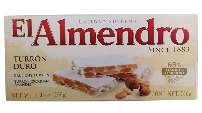 Another old-world candy with lasting power is Spain's El Almendro turrón. The brand has been selling turrón, which is a traditional Spanish nougat candy, since the late 1800s. Sweet, nutty, and toothsome, turrón can vary in flavor depending on its ingredients. El Almendro offers two classic varieties of the candy: turrón duro (hard) and turrón blando (soft). The former is made with honey and roasted almonds while the other uses roasted ground almonds for a more delicate consistency. Both are highly popular around Christmastime.