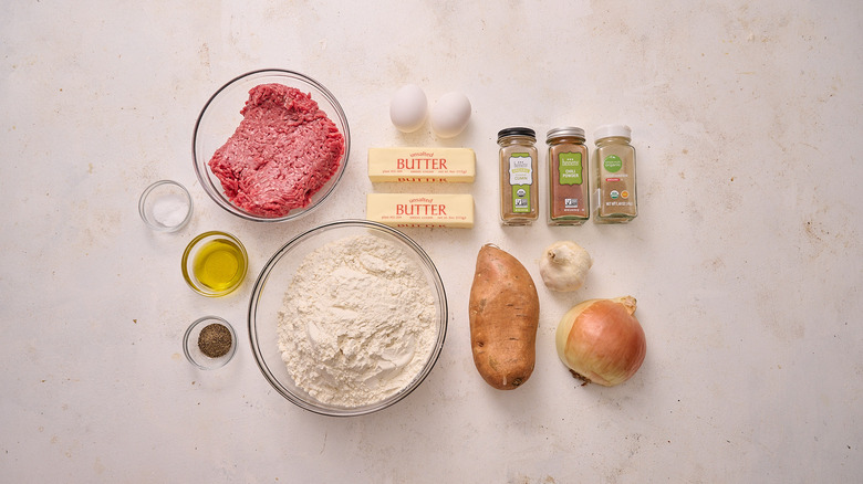 Gathering ingredients for crispy baked beef and sweet potato empanadas