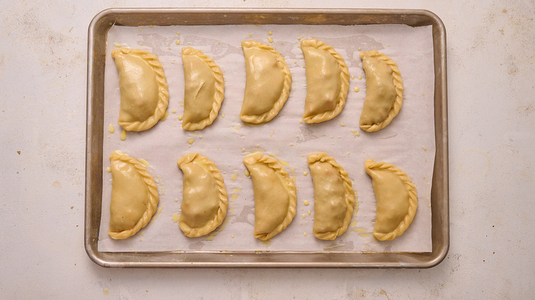 - Whisk the egg and 1 teaspoon of water together in a small bowl. Brush each empanada with the egg wash.