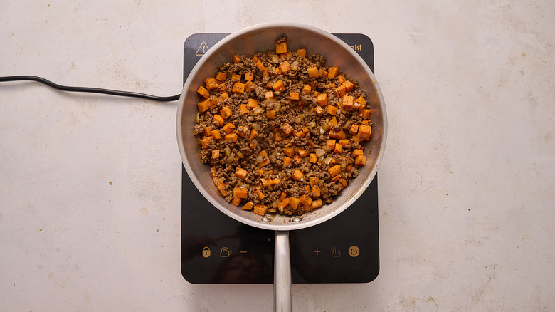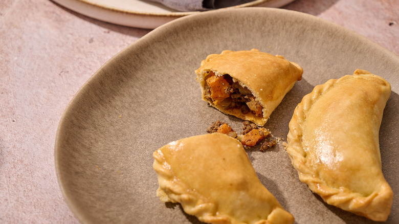 Like any form of hand pie, empanadas can be both challenging and time-consuming to make, but recipe developer Michelle McGlinn shares a recipe that makes the process feel easy. A crispy, airy dough made quickly in the food processor envelops a savory beef and sweet potato filling and crisps to golden brown in the oven. These empanadas are great for serving a crowd or for replacing your usual taco night — and though they may take a few extra minutes, the results are well worth the wait.