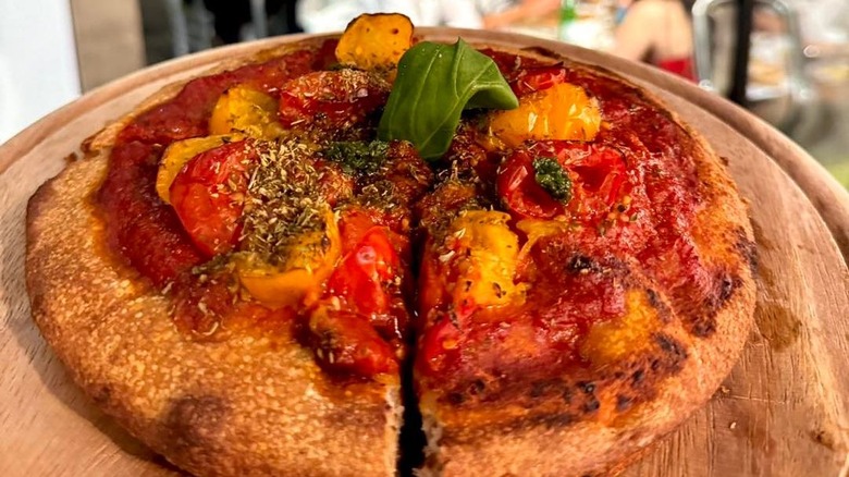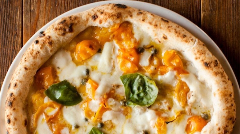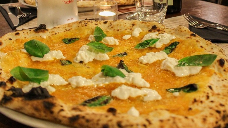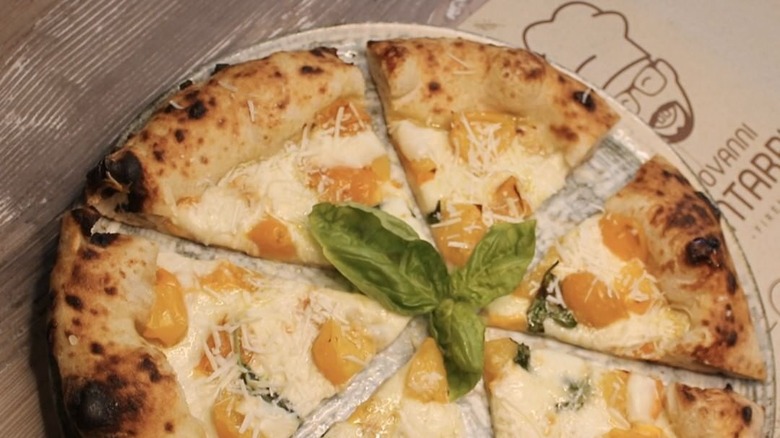 While this changes the flavor of the pizza slightly, by giving it a sweeter and milder bite, it mostly changes its appearance. Instead of your typical red, white, and green, you get a more subdued color palette with white on yellow and a pop of color thanks to the basil. If you're a cautious eater, this is a great way to branch out from your usual plain Margherita and try something new without going too far off the map.