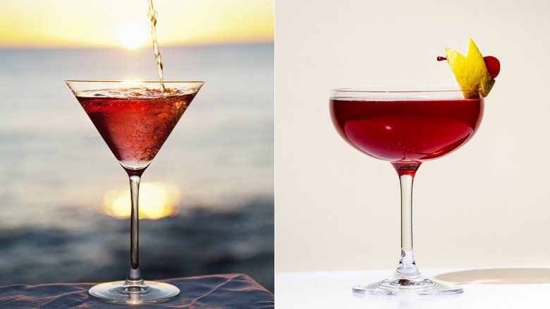The cosmopolitan lends itself perfectly to experimentation, with plenty of existing riffs and endless opportunities for your own experimentation. Choosing another flavored vodka is a great starting point. Take the Metropolitan, for example — this version of the cosmo simply swaps out lemon-flavored vodka for blackcurrant vodka. It's a basic yet highly effective replacement that gives the cocktail a berry-forward profile while retaining the citrus elements that form the core of the drink's flavor.