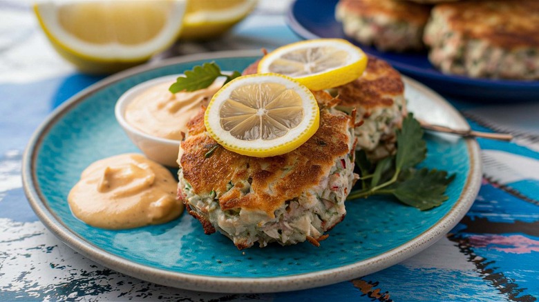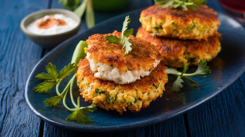 To make the cornbread crab cakes, whip up a batch of old-fashioned hot water cornbread or get a store-bought one. Allow the cornbread to cool before crumbling it up into a bowl, ensuring you get rid of any lumps as you do. Add in the shredded shellfish, followed by beaten eggs, mayonnaise, salt, pepper, and minced green onions. Stir everything together until they're properly combined and form the patties. Fry them in vegetable oil until both sides are golden brown.