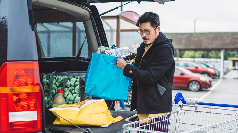 Plus, some states and cities charge a small fee for plastic bags. The same can be said for paper versions, which might be available in regions where plastic bags have been banned. In either scenario, bringing your own bags will help you save money in the long run, as even small fees can add up over time. The trick, of course, is actually remembering to bring them to the grocery store. If you're having a hard time adopting the habit, try keeping a few reusable bags by the door, near your keys, or in your car. It's also worth buying a foldable shopping bag with a keychain, which will allow you to clip it onto your purse or backpack.
