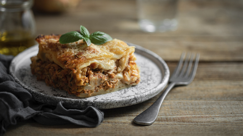 To get started, prepare your mac and cheese as normal (with cooked elbow pasta or classic straight cut macaroni noodles) and simply layer it up with your beef ragu, finishing with a final topping of reserved sauce and a scattering of shredded cheese. This will result in a lasagna with distinct, pretty-looking strata that's closer in appearance to its traditional presentation, or a bit like a Greek pastitsio made with tube-shaped noodles. However, you can also go the easier route and cook your pasta in the beef ragu itself in an oven-proof skillet before topping the lot with a generous amount of cheese sauce and baking until bubbly. The benefit of this technique is that it eliminates the drawn-out layering process. Plus, your dish will be ready at speed because you're using cooked noodles instead of raw, dried lasagna sheets.