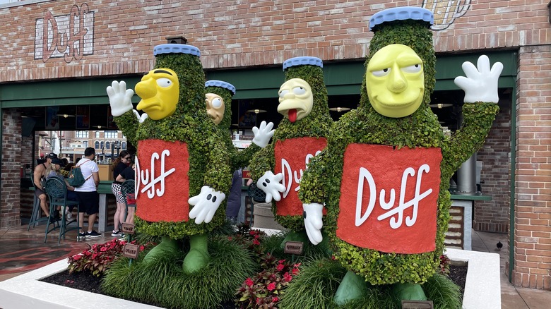 Not to be confused with Moe's Tavern (which is across the street in the Simpsons Springfield area of the park), Duff Brewery is situated entirely outdoors. It's instantly recognizable by the Seven Duffs topiaries out front — like the Seven Dwarfs, but inebriated. And although it's outside, Duff Brewery is more like an animated beer garden, with seats around the entire perimeter of the covered bar.