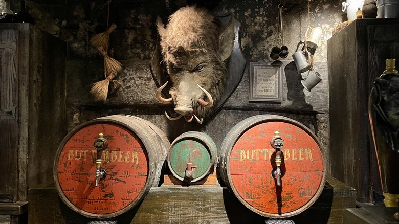 The only beverages you'll find at outdoor stands in the Wizarding World of Harry Potter are the various non-alcoholic Butterbeers and bottled "Gilly" Water. If you want something a little stronger, then, you'll have to head inside to The Three Broomsticks and the Hog's Head pub (which is technically still attached to The Three Broomsticks). Of course, standing in the dark, cool, air-conditioned space is a welcome relief from the searing Florida sun, even if you have to wait a little while to place your order or receive a drink.