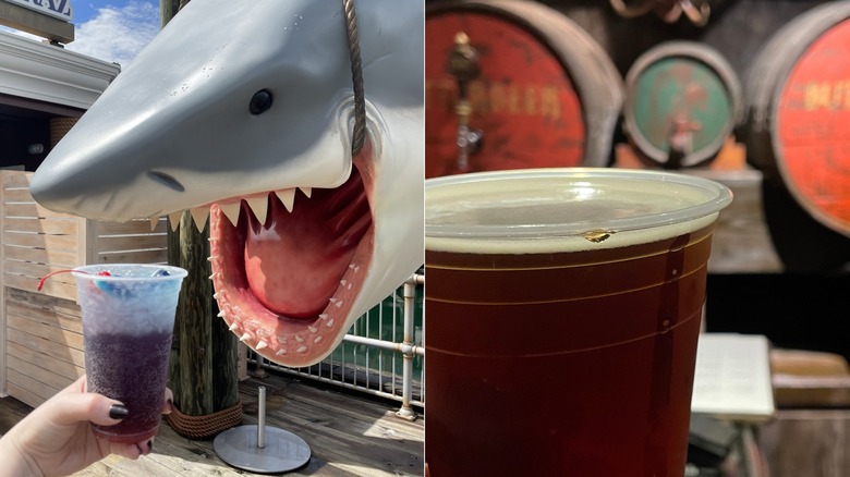 Chez Alcatraz sits on the central lagoon waterfront in the San Francisco neighborhood of Universal Studios, just outside of the Wizarding World of Harry Potter. Strung up beside the walk-up bar is one of the ocean's most famous movie stars: the great white shark from "Jaws." And while that film was set in the fictional coastal Atlantic town of Amity Island, the disaster-prone Pacific coast city works when space is limited.