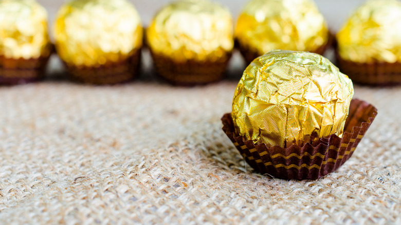 To make this treat at home, you can coat the bottom of your egg roll wrapper with something sticky, like marshmallow spread, cream cheese, or — to hone in on the hazelnut flavor — a swipe of Nutella. Then, pop on your candy balls, wrap up and seal everything, and fry. The heat from your frying mechanism of choice will melt the chocolate, but it will still leave the little nutty pieces, along with the decadent chocolate leftover. You can stick with the classic candy, or try a different Ferrero Rocher flavor. A drizzle of caramel sauce or melted chocolate would really drive those sweet flavors home and give you a well-rounded, tasty treat.
