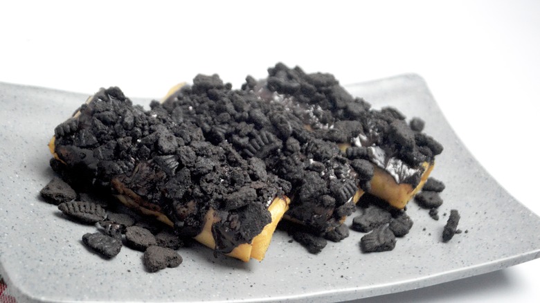 Deep-fried Oreos are often made with leftover pancake batter, but there's no reason why you can't find a less bready alternative by using egg roll wrappers instead. The egg roll wrappers will add a distinct crispiness to the outside of your cookies and help diversify each and every bite.