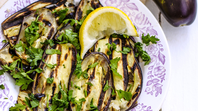 You're mistaken if you think the grill is reserved for meat, as grilled eggplant is the dish you want to serve at your next barbecue. Grilling allows you to get them nice and charred, getting those sought-after grill marks that are a sign of deeply caramelized and smoky flavor. Since eggplants are a hardier fruit, they're stable enough to put on the grill and still hold their shape really well. While the classics like coleslaw, potato salad, or grilled corn are hard not to love, they can get a little boring, and grilled eggplant is an innovative addition to the menu. As it's quite a "meaty" fruit, it's also the perfect choice of what to grill for a vegan or meat-free meal.