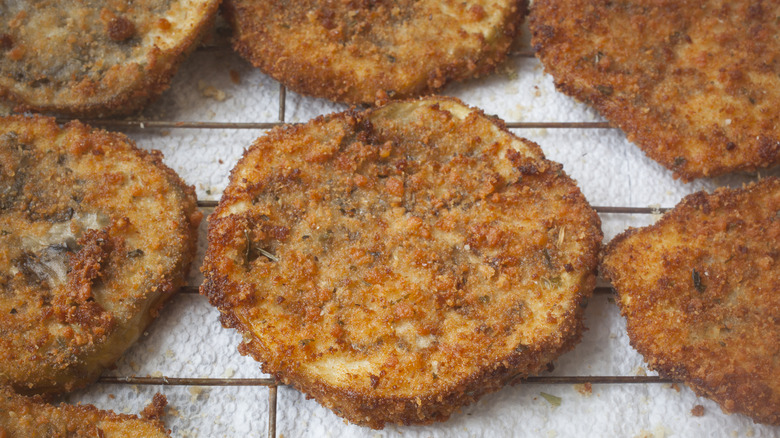 One sure way to make tasty eggplant is by slathering it in a fluffy batter and frying it up. A quick fry in hot oil ensures the eggplant doesn't have enough time to absorb too much oil, while still getting soft in the middle and crispy on the outside. Plus, the batter provides you an opportunity to add all kinds of seasonings to add even more flavor. Spices like paprika, garlic powder, onion powder, ground cumin, and more can all make for one tasty fried eggplant.