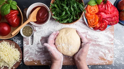 "You can do this by infusing your herbs (I personally love rosemary and some garlic) for 20 minutes in a small pot on medium to low heat. Then you let it cool down and then you can use this infused oil for your dough," says Congiusta. Another cool hack for adding flavor to oils is using leftover scraps from cooking, such as citrus peels, green onion ends, ginger peel, and even cheese rinds. A Parmesan rind infused olive oil would be fantastic on pizza dough regardless of the toppings.
