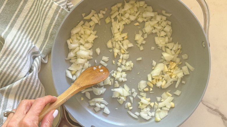 Add the remaining salt, rice, chickpeas, cumin, smoked paprika, cinnamon, and broth. Cook for 10 minutes on medium-low heat.