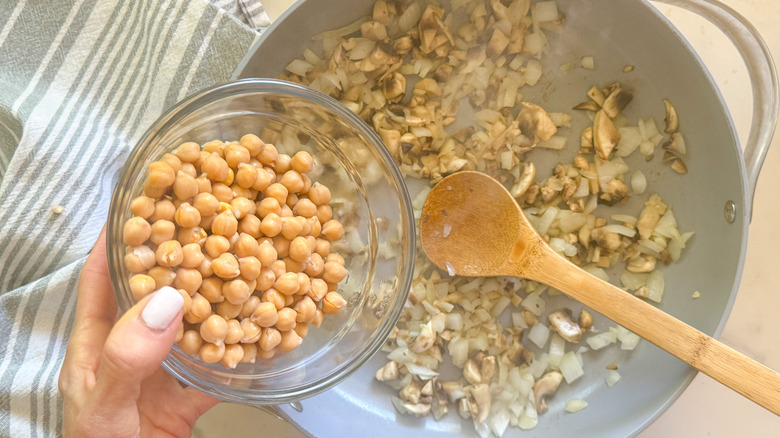 - Add the remaining salt, rice, chickpeas, cumin, smoked paprika, cinnamon, and broth. Cook for 10 minutes on medium-low heat.
