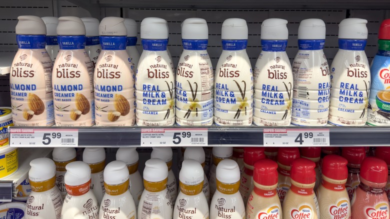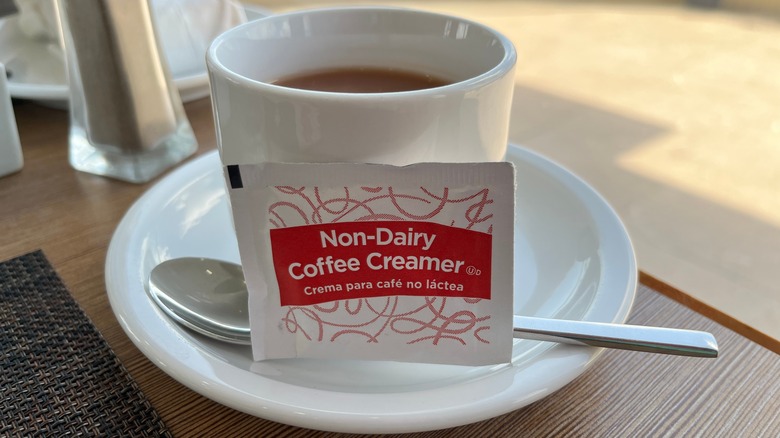 Vegans should also watch out for certain sweeteners. Surprisingly, sugar is not always vegan as refined white sugar uses bone char — the charred bones of cows and other livestock — as a bleaching agent. So if you are a staunch vegan, you'll want to look out for the use of this to play it safe. Beet sugar and organic unrefined cane sugar typically don't use bone char though, so if your dairy-free coffee creamer uses one of these you're likely in the clear. And while it's a less-common ingredient in commercially sold dairy-free creamers, honey is also not considered vegan since it is made from honeybees.