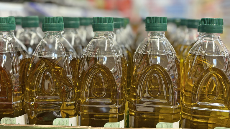 Olive oil is the culinary stuff of life. But if we had to pick one bone with the cooking and flavoring essential, it's how hard it is to pour from so many bottles — or, rather, how easy it is to over-pour. Regardless of what the best olive oil brands are in terms of taste, their bottles can make adding the right amount to your pan or dish virtually impossible. Sure, one of the tips for olive-oil shopping could be to search for bottles with spouts that avoid you accidentally doubling the amount you need, but since there's no correlation between bottle tops and quality, that could keep you from finding simply the best oil. So, instead, just pick your favorite oil, and if it comes in a plastic bottle with a plastic cap, make your own spout. That might sound like a pretty advanced craft, but it's actually so easy that anyone can do it.