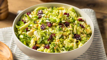 Brussels sprouts are denser in texture than cabbage, with more of a toothsome bite and chew. So, they'll make your coleslaw heartier, more comforting and filling for cooler months. They're also more bitter than cabbage, which will enhance an autumnal coleslaw with deeper flavor notes and some added complexity to play with when it comes to other ingredients and your dressing. Think about a classic Brussels sprouts slaw recipe: Your base is the dense, earthy, bitter-leaning sprouts, balanced by the creamy fat of mayonnaise, the funky tang of apple cider vinegar, the sweetness of honey, and the spice of Dijon mustard along with more sweet, nutty, and spicy notes from dried cranberries, pecans, and seasonings. It's a simple, straightforward salad, but with an incredibly complex yet harmonious blend of flavors and textures, resulting in a higher-intensity coleslaw that holds its own with heavier fall and winter dishes.