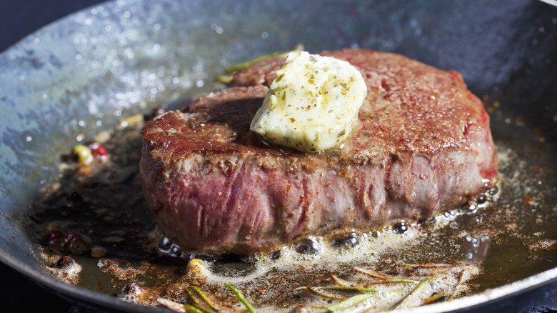 While some meat eaters prefer a bit of leathery give when biting into a cut of cooked steak, others appreciate the kind of buttery texture that Texas Roadhouse's Dallas filet offers. The Dallas serves up some of the most tender, lean cuts that can be taken from an animal. Pieces of this meat are located in the hindquarters of a cow, just behind the ribs. It's a prized area for meat eaters, and Texas Roadhouse fires up these servings with deserved reverence, as chefs season the sirloin with brown sugar, salt, and a variety of seasonings like paprika, chili powder, garlic powder, onion powder, and turmeric.