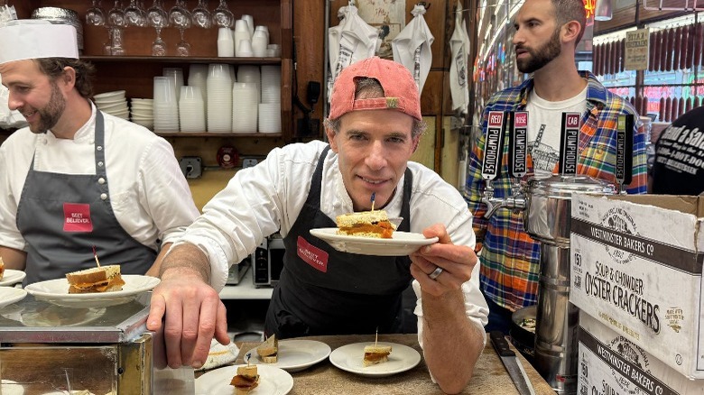 "Jake [Dell] felt his grandfather [Martin Dell] would have loved it," chef Dan Barber explained. And he knew from the start that the Row 7 beet would be the perfect veggie to take on the challenge. "Every time we roasted the beets, it was like the most umami, meaty, rich vegetable. You can treat it like meat," the Blue Hill chef shared, "and then we started curing it like pastrami and ... I got Katz's actual spice mix." Barber and Dell worked together on the beet preparation, "refining something that would appropriately honor the pastrami," as Douglas put it. Barber also credits the beet — and its breeder, Irwin Goldman — for making their job significantly easier: "Honestly, the recipe was written by [Goldman]; we're just accentuating it a bit. If the genetics weren't there, it would just be a beet."