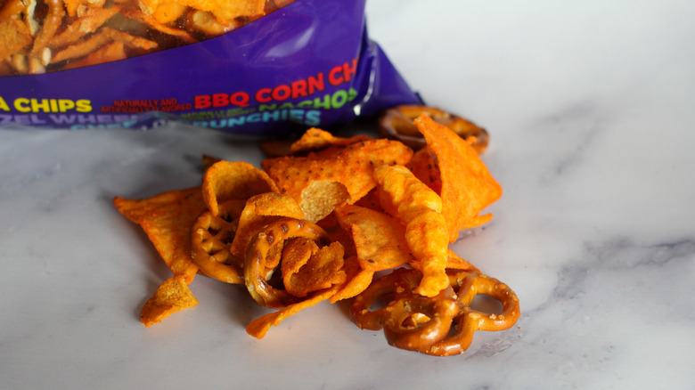 There is no snack mix more iconic than Chex Mix. If there was a salty snack that I needed to pick up from the grocery store, it would be a bag of this stuff — specifically the original flavor (keep your cheese out of it). The primary components of the original-flavored Chex Mix are cereal pieces, pretzels, mini breadsticks, and crispy rye chips. Now, I could probably go on and on about the best component of this cereal (it's a toss-up between the rye chips and the heavily seasoned nuggets of salty cereal hidden in the bag ... duh). The sheer amount of debacle about the best component of Chex Mix is a testament to how good this snack mix really is.