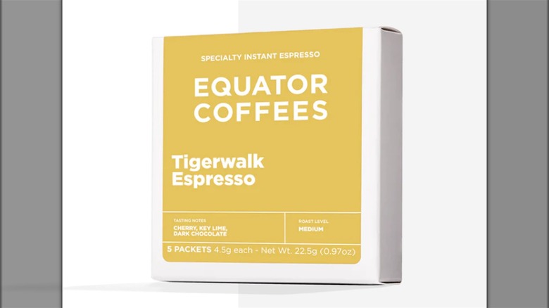 Equator Coffee — established in California in 1995 — has been churning out award-winning brews for years, including its Tigerwalk espresso. Its delicate, fruit-forward flavor makes it a well-rounded and versatile espresso that's perfect for sipping straight or crafting lattes. This flagship espresso became a household name for Equator, prompting the company to offer bold Tigerwalk espresso in instant form, adding to the repertoire of artisanal coffees turned instant in the modern coffee market.