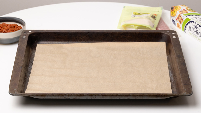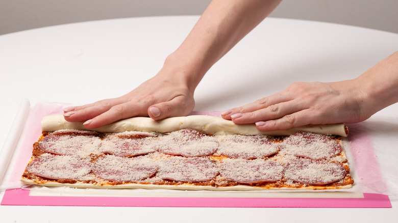 - Using your hands, carefully roll the pastry into a tight sausage shape.