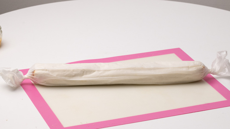 Wrap the log and place the pastry into the fridge for 15 minutes.