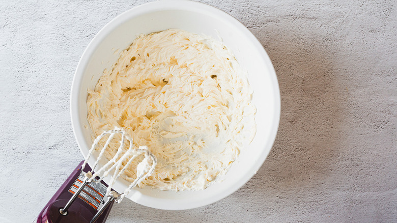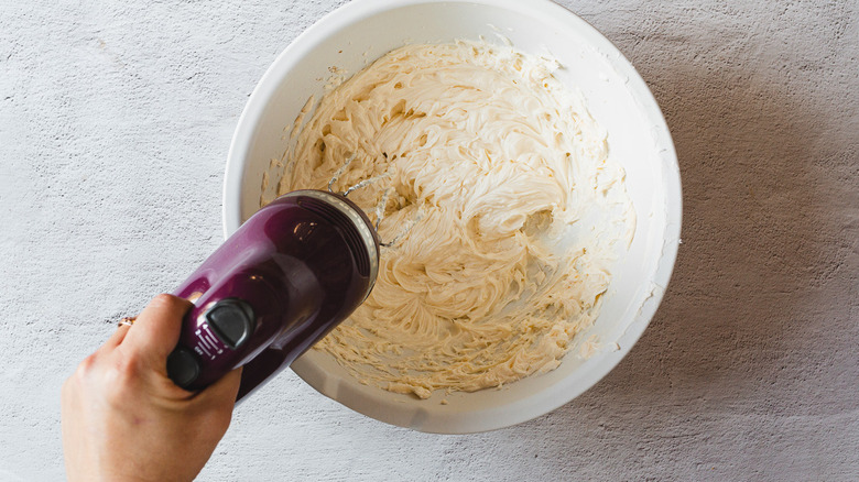 - For the frosting, beat room temperature cream cheese and butter until smooth.