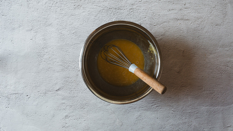 - In a separate bowl, beat eggs, then whisk in 4 tablespoons melted butter and vanilla.