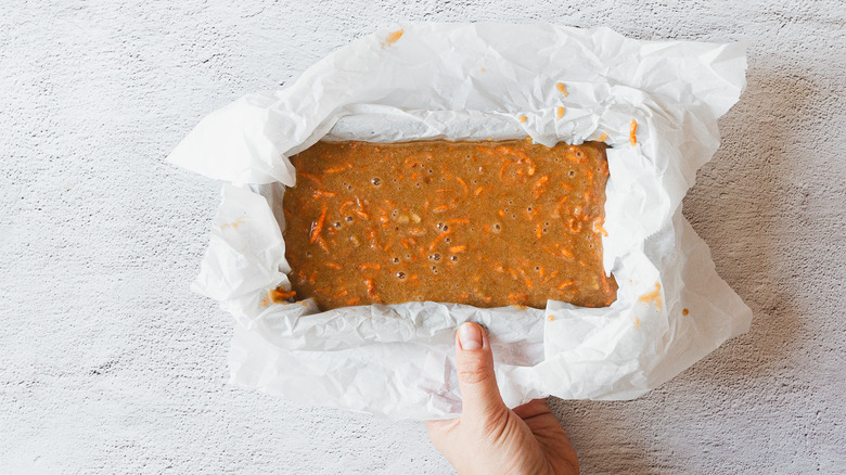 - Grease a 9x5-inch loaf pan and line it with parchment paper.