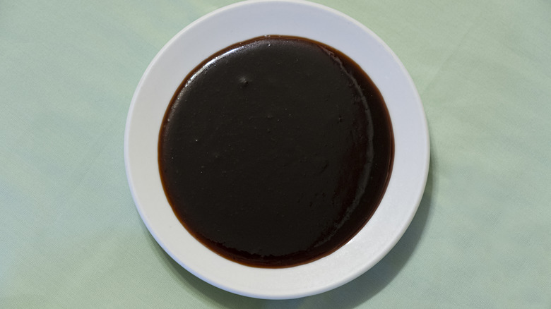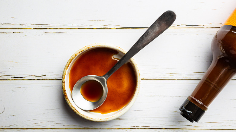 Worcestershire sauce is one of those foods that seem vegan but isn't. Although it's typically made with anchovies, there are plant-based and vegan Worcestershire sauces out there. The fish-less version is rich in umami flavors, but much tangier than most soy-based sauces. When making your own vegan Worcestershire, swap the anchovies with meaty alternatives like miso or dried mushrooms. However, the main flavors come from the intensity of the soy sauce and vinegar.