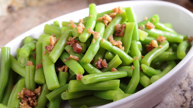 The chain's green beans are certainly not just the veggie, because they're combined with bacon for meaty flavors, brown sugar to cut through the richness with a bit of sweetness, and onions. If you're from the southern United States or have been lucky enough to dine in the region, then you might have already had a similar version of green beans. The addition of the ingredients will turn what could be a boring side dish into a vegetable packed with sweet and smoky flavors.