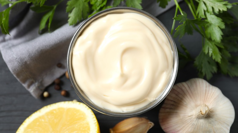 While Raichlen says that he typically uses a smoking gun to enhance the spread, he tells us that you can do it in a smoker as well. But if you're going to go the smoker route, the chef says to use the same process as the hard-boiled eggs: Place a bowl of ice under the bowl of mayo. That way, the condiment won't get too hot. While you could use the spread in an egg or tuna salad, Raichlen suggests putting it on a BLT. If you do that, Raichlen says you'll hear the angels sing.