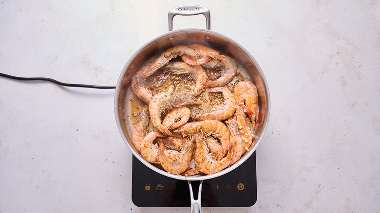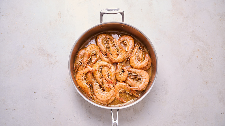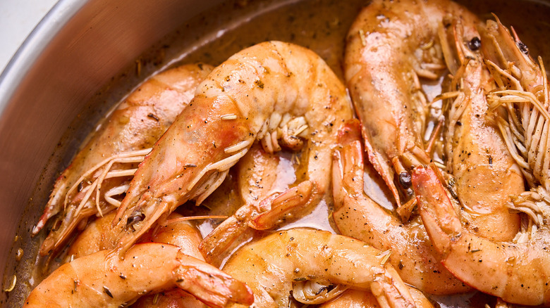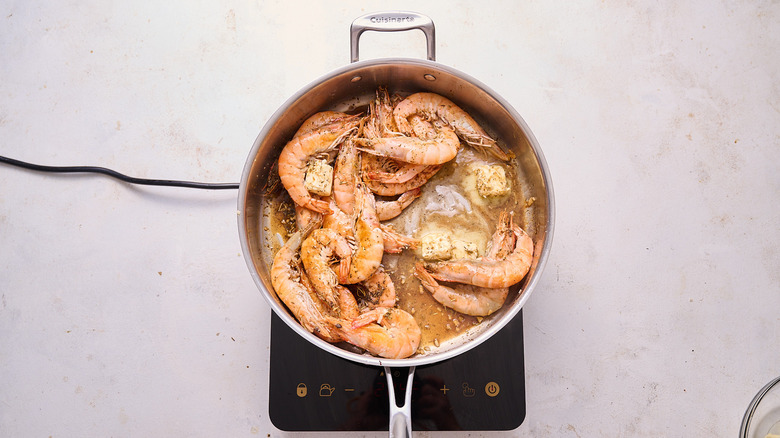 The other unspoken rule with barbecue shrimp is to eat it with your hands — as in, don't be afraid to get a little messy. Grab the saucy shrimp by the head, twist it off, and slide the remaining shell away. Quickly devein the shrimp if that's not already done, then eat the plump meat, dipping it into the sauce for another coating. Lastly, eat it fresh, as soon as possible after you cook it, because the sauce does not make for good leftovers. The butter solidifies in the fridge, and while it can be reheated back to a smooth texture, it is best freshly emulsified in the skillet.
