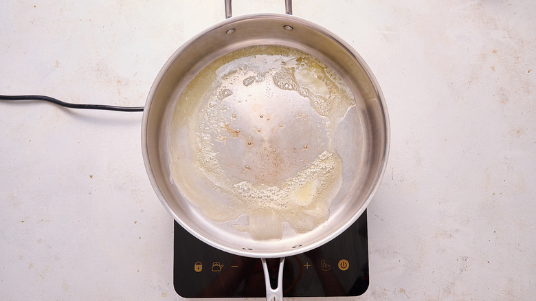 - Melt 2 tablespoons butter in a large skillet over medium heat.