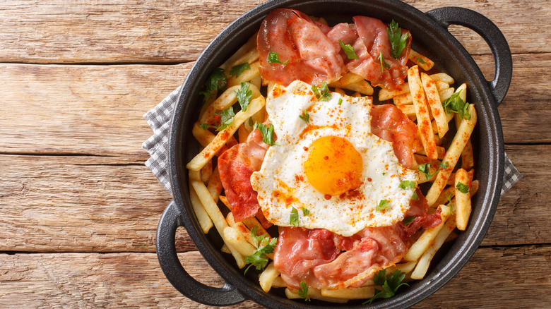 Though brunch isn't customary in Spain, Mat Schuster believes this dish definitely belongs in a brunch menu, and that it can be enjoyed with a Cava (Spanish sparkling wine) mimosa. He cautions against overcooking the eggs, though. Instead, you'll want to leave the egg intact, "so the crispy potatoes get a nice layer of runny yolk."