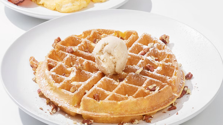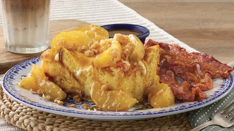 Pumpkin and caramel apple flavors haven't just slid onto IHOP's menu. They've bludgeoned their way in with some force, demanding attention and announcing an early start to fall. One of the first treats to grace the chain was September's pancake of the month, the maple pumpkin cheesecake pancakes. Looking forward, these saccharine stacks will give way to October's elected flavor of Reese's Pieces. But, not to worry. That won't be the end of the pumpkin road at IHOP, as classics like the pumpkin spice pancakes and pumpkin spice cold foam cold brew will remain.
