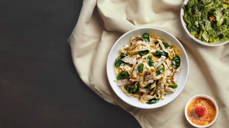 The entree selection is where the meals begin to showcase their differences. The pasta meal includes the dealer's choice of either the fettuccine Alfredo or the spaghetti pomodoro sans animal-based protein. The specialty pasta meal, on the other hand, offers the Pasta Bravo with chicken, mushrooms, and a red pepper sauce or the guest-favorite Pasta Woozie dish — the Italian chain's take on a chicken fettuccine Alfredo. Finally, either lasagna, shrimp scampi, or chicken parmesan are up for grabs with the specialty entree meal. All three limited-time dinners are available for dine-in only on Mondays through Fridays.