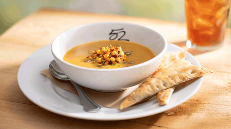 As soon as August, chain establishments begin embracing the fall spirit and unveiling fresh lineups teeming with seasonal fare. Sweet tastes of pumpkin, apple, cinnamon, maple, and pecan pop up relentlessly in breakfast plates, desserts, and even beverages. At the same time, there's an alternative world of savory autumnal meals coming to light, featuring in-season ingredients like mushrooms, onions, Brussels sprouts, carrots, arugula, and butternut squash. Plus, don't get us started on the influx of hearty soups and stews like quintessential cups of chili.