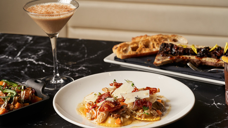 Pumpkin remains strong on the food side of things. The duck smashed burger is served alongside sweet potato fries and embellished with caramelized onions plum chutney, cheddar, and a special pumpkin ketchup. Then, there's the pumpkin ravioli and king crab with sage butter, champagne confit mushrooms, pecorino, and pine nuts. Last but certainly not least, diners can round out their meal with a side of seasonal spuds. The pumpkin and potato gratin dish combines thyme, gruyere, and maple butter for a quintessential marriage of sweet and savory.