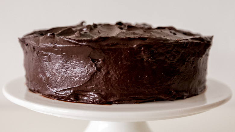 If you want to add even more of a homemade feel to your stout chocolate cake, swap the oil for butter or stir in an extra egg yolk. You can also enhance the flavor of the stout and chocolate with a tasty icing or glaze pairing. Our recipe for Guinness chocolate cake spikes the cake crumb with stout and creates a curd filling with Irish cream and whiskey. In case you're wondering, a cake with added stout is fine for children to eat as the alcohol burns off during baking, however, if you're adding whiskey or Irish cream to the filling or frosting, then it will have to be an adults-only treat. A stout chocolate cake would also taste delicious with a coffee-flavored icing or classic cream cheese frosting recipe. If you can't get enough chocolate, a rich chocolate frosting will stand up to the complexity of a stout-enriched cake. Since you're using boxed cake mix, you can also keep things simple with a store-bought chocolate frosting, for which we have a ranked list.