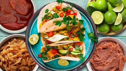 For the most satiating tacos, add a plant-based meat substitute like tempeh, seitan, or tofu. These foods are convenient and easy to use, but if you'd like to optimize the flavor of your tacos, it's worth marinating them first. "Marinating food is more than just a flavorful enhancer; it's a versatile technique that can elevate your dishes," shares Leah Delyte Di Bernardo. "By immersing your ingredients in a flavorful liquid, you can infuse them with complex blend of tastes." Di Bernardo adds that marinades also lock in moisture, preventing vegan taco fillings from drying out while cooking.