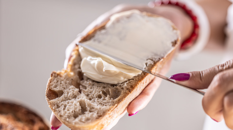 We recommend using a basic sandwich bread like white or whole wheat. If you're still not convinced that cream cheese and Nutella are a match made in heaven, take the extra step and prepare it toasted. Here, you'll want to use crusty bread, like sourdough, to ensure that your sandwich has a satisfying crunch. Broil a few slices of bread on their own first, and then remove them from the oven once they're beginning to brown. Spread some cream cheese and Nutella on each slice, and then place the whole sandwich back in the oven, broiling it for a few more minutes to allow it to reach your desired doneness. Ideally, it's golden brown and a little messy — but that's the beauty of this combo.