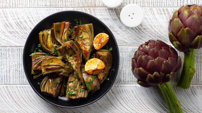 Canned artichokes boast many of the same earthy and nutty nuances as just-picked buds. However, these flavors can become muted with canning. The trick is knowing how to restore the artichoke's full gustatory potential — cue, grilling. Able to give chokes a smoky char, grilling adds layers of depth to the lackluster canned veg. In fact, it also intensifies and amplifies the natural flavors as the artichokes brown and caramelize. Even textural diversity is heightened as the soft artichokes crisp up when exposed to a kiss of hazy heat. Not to mention that the presence of char marks also increases aesthetics, aiding in the canned vegetable's overall appeal.