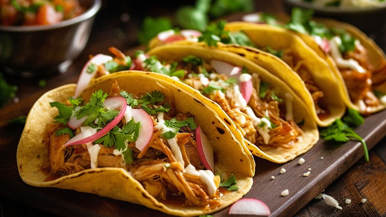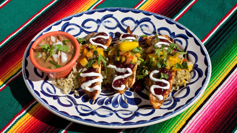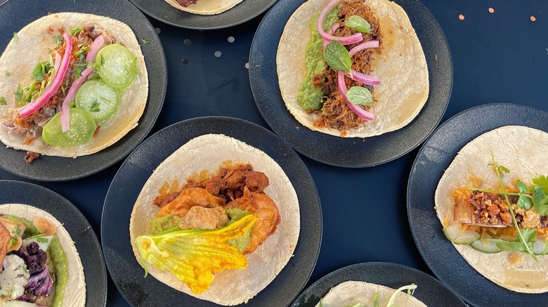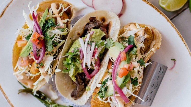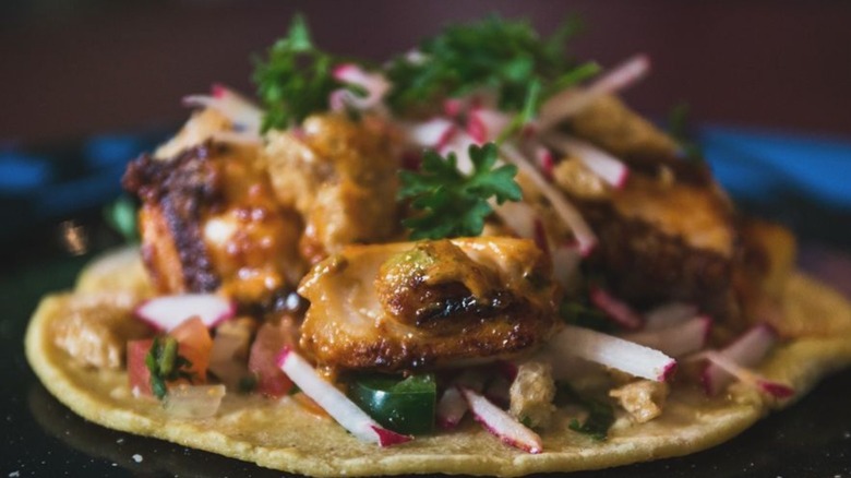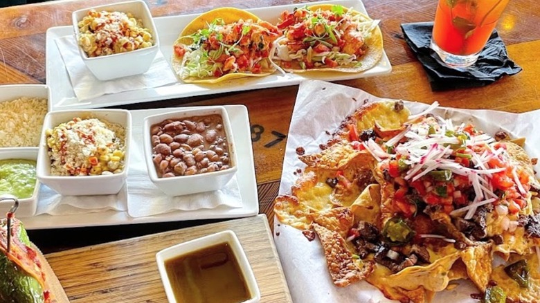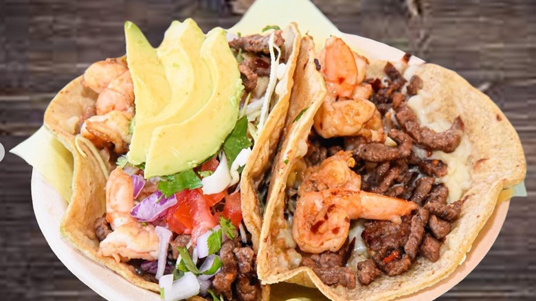 The menu also boasts a solid selection of seafood-focused tacos. Enjoy the best of both worlds with the surf and turf taco — a tasty combo of skirt steak and shrimp with classic toppings like cabbage, onions, cilantro, and avocado. The grilled octopus taco is another tempting option, while the Taco Especial has a unique flavor profile thanks to the use of smoked fish, shrimp, and scallops. Plant-based diners are also covered here with the soy chorizo taco, and you can never go wrong with Oscar's chips and guacamole.