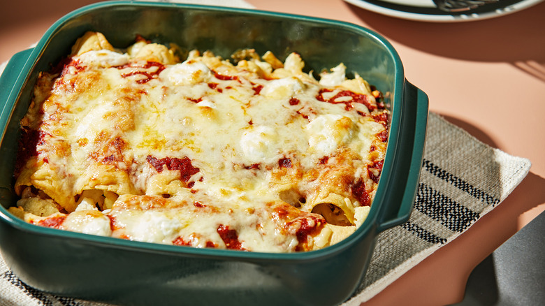 It's easy to adjust any enchilada recipe with cottage cheese, and there are a plethora of recipes online that use the ingredient already. Here at Tasting Table, we have some recipes you can try with cottage cheese, too. To skip the meat, try this roasted vegetable and black bean enchilada recipe that features veggies like mushrooms and zucchini plus an easy-to-pull-off homemade enchilada sauce. Or to fuse cottage cheese and meat in your tortillas, try our cheesy salsa verde chicken enchiladas recipe that replaces a traditional sauce with a homemade salsa verde. Or keep it classic with our loaded beef enchiladas recipe.